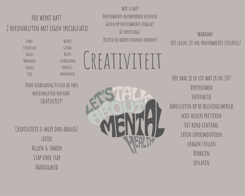 Creativiteit staat wat mij betreft met alles in verbinding. Het begint bij je mindset. Door mijn mindset te veranderen in bepaalde dingen ben ik anders gaan kijken naar mijzelf en de wereld om mij heen. Dit stuk was voor mij heel belangrijk en nog steeds om rust te krijgen. Dit heeft voor iedereen een andere invulling, omdat ik toch wel merk dat het dicht bij jezelf komen vaak als zweverig wordt gezien. Ik zou zeggen geef het de voordeel van de twijfel en ga zelf op onderzoek uit waar jij rustig van wordt. Daar begin je al met jou creatief proces.
